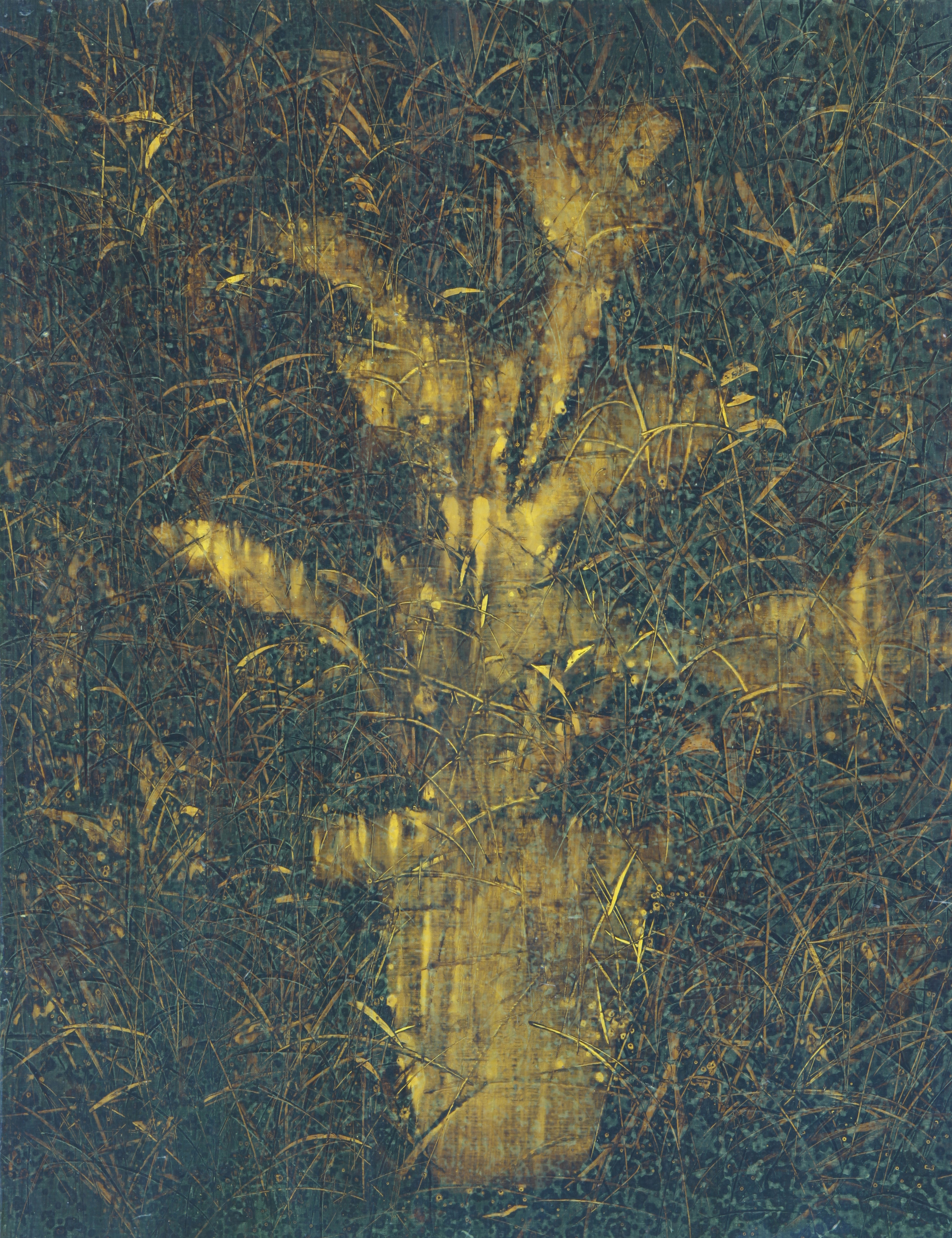 “...one of them is reminiscent of Abstract Expressionism’s All-Over painting – a tremendous body of wild plants covers the entire canvas to create a dizzying chaos. The other group also utilizes the plant motif: a phantom image of what looks like a singular bedding plant. If the former group portrays the dynamism of ‘unhindered nature,’ the latter group contains nature tinged by the human touch. In other words, this series illustrates the comparison between ‘unhindered vs. domesticated’ nature, and the former comes to prior to the latter’s portrait.”